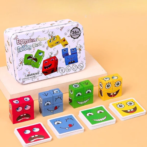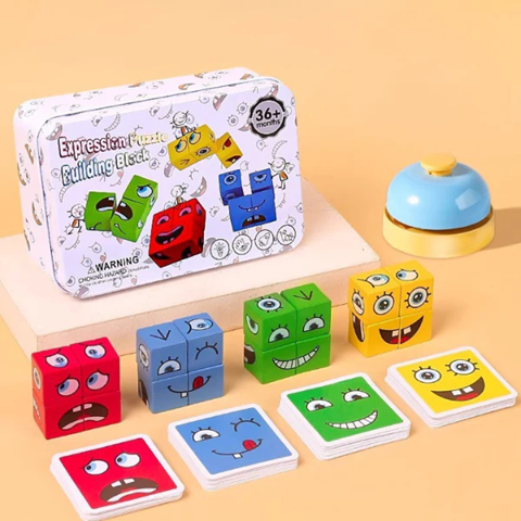 Keera punaseid, siniseid või kollaseid klotse, loo erinevaid näoilmeid ja vaata, kuidas lapsed õpivad tundma emotsioone – rõõmust üllatuseni!